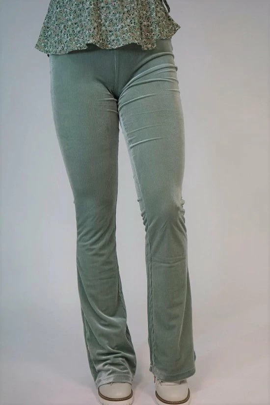Trendy rib flair broek met een elastische taille in het groen.