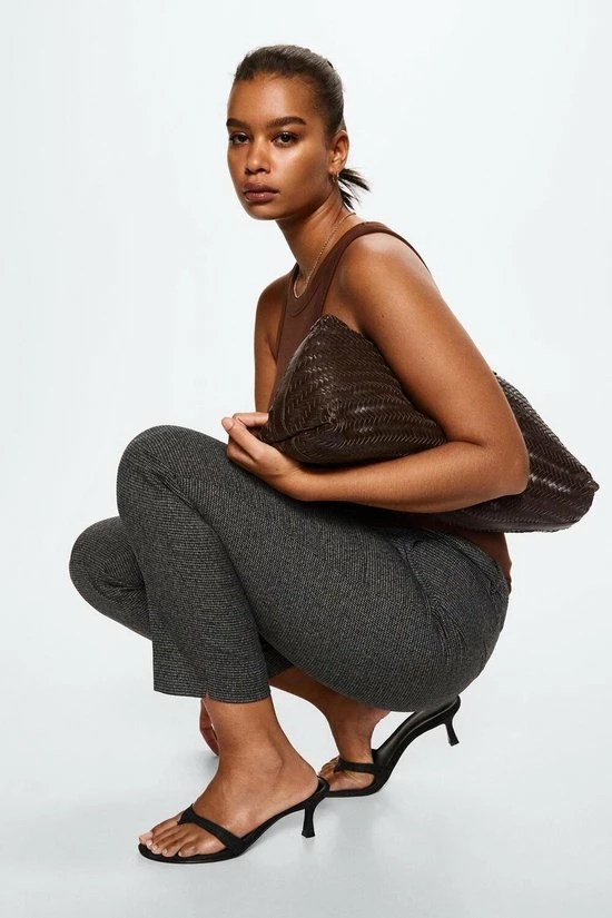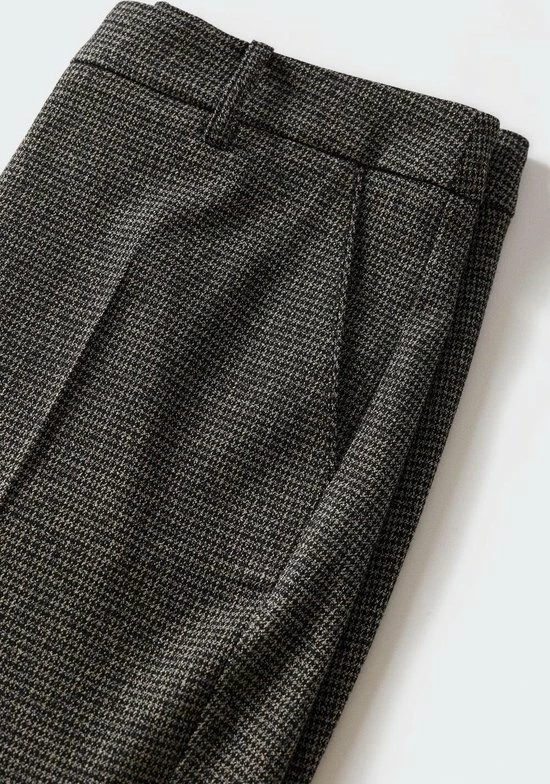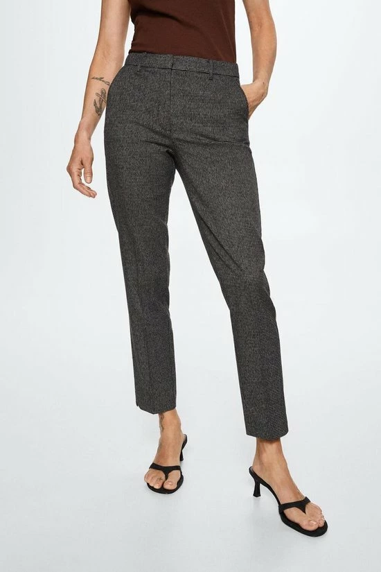 Skinny fit broek van Mango met een pied-de-poule print. Dit model heeft twee steekzakken aan de voorkant en twee decoratieve paspelzakken aan de achterkant. De broek valt op de enkels en wordt gesloten door een knoop-, gesp- en rits- combinatie.