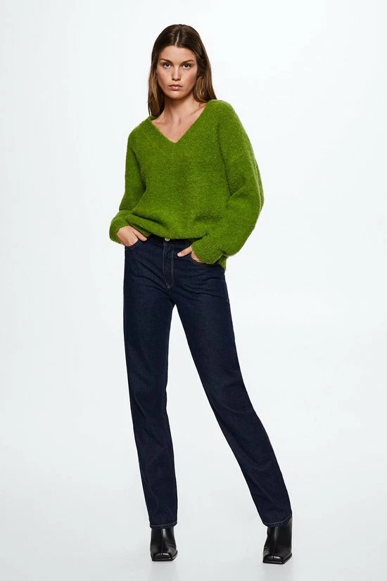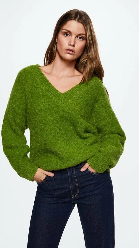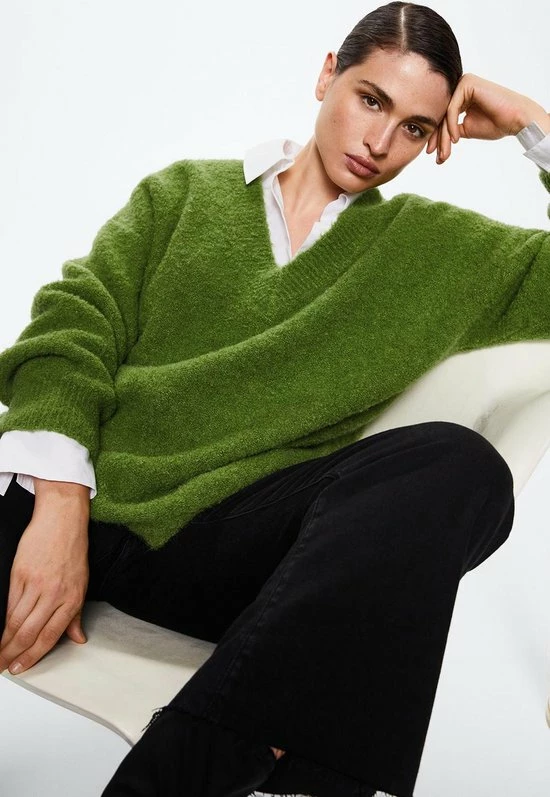 Duurzaam geproduceerde trui van Mango in een oversized pasvorm. Deze gemeleerde trui heeft lange mouwen en een v hals.