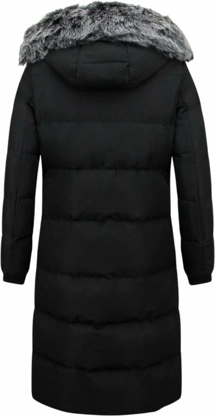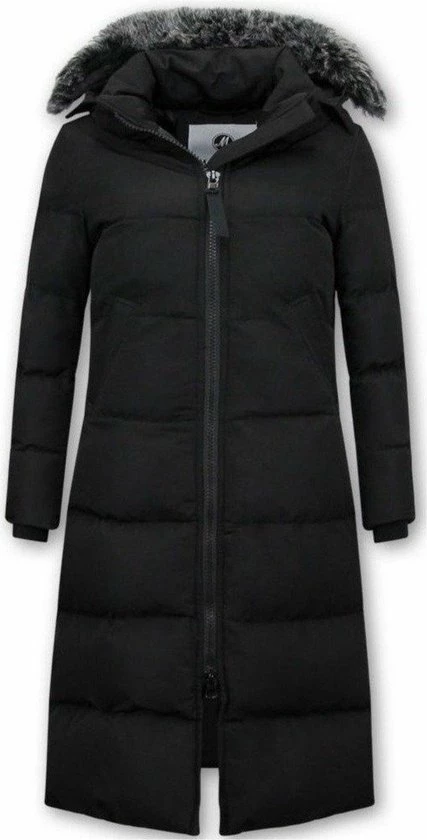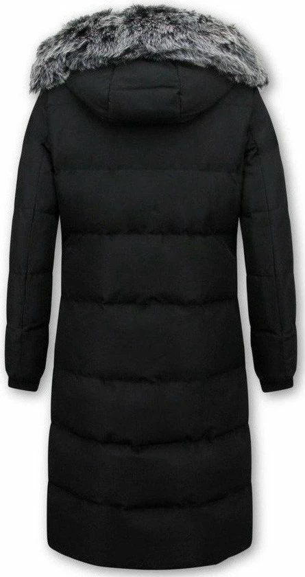 Deze extra lange parka jas voor dames met kunst bontkraag is een absolute verschijning en vooral in de kleur zwart. De jas sluit prima om uw lichaam door de slim fit pasvorm en houdt uw lekker warm.