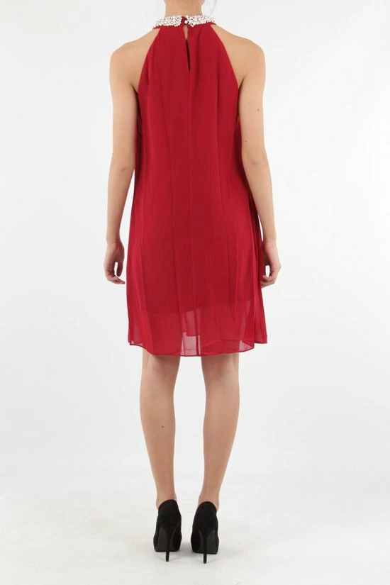 Mooie avondjurk met parels op de kraag – Bodeaux