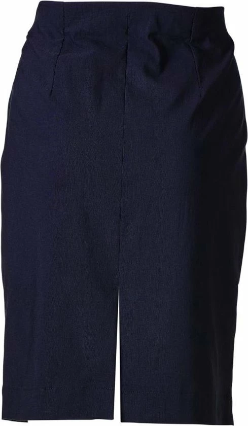 Dames rok van een elastische stof waardoor de rok mooi aansluit. De rok heeft een kokervorm en aan de achterkant een kleine split. Dit is de korte versie. 70% viscose, 27% polyamide, 3% spandex. Lengte bij maat S: 58cm