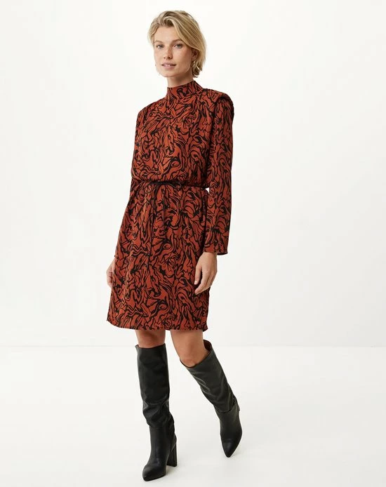 Mock neck longsleeve dress Dark Brown voor Vrouwen van het merk Mexx uit de collectie Herfst/Winter 2022. Materiaalcompositie: 100% polyester