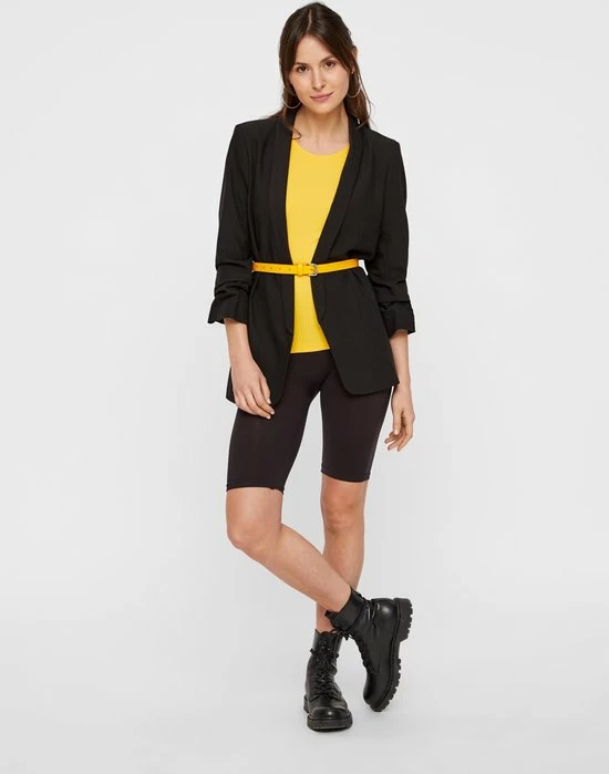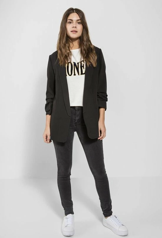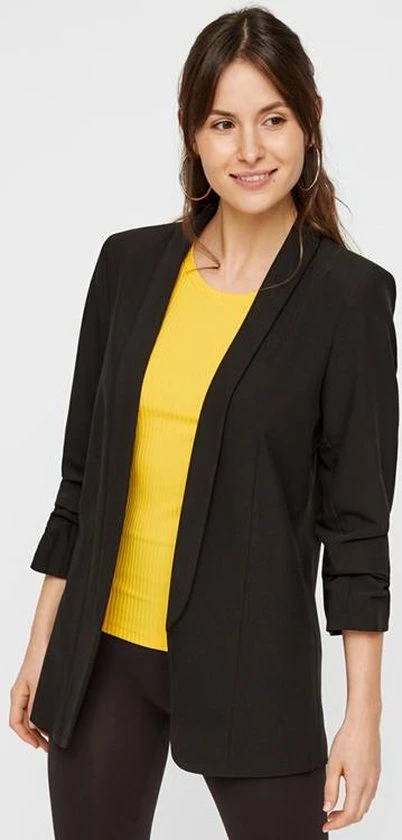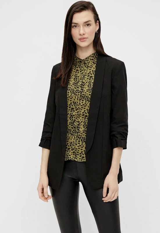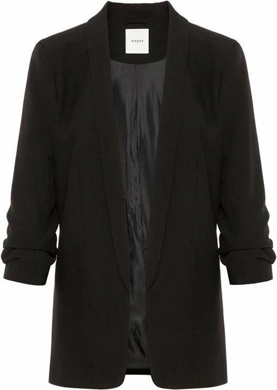 Deze blazer voor dames van PIECES is gemaakt van een polyestermix. Het model heeft een openvallende hals en driekwart mouwen.