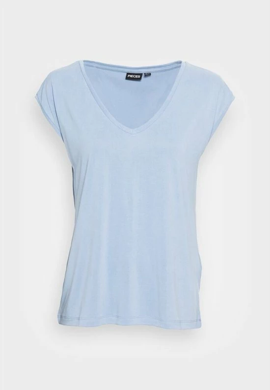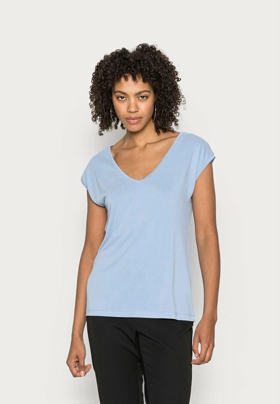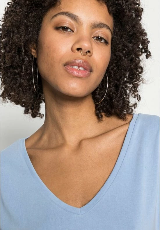 Dit blauwe t-shirt is gemaakt van een tencel kwaliteit waardoor deze heerlijk is om te dragen. Het t-shirt heeft een loose fit en een v-neck.