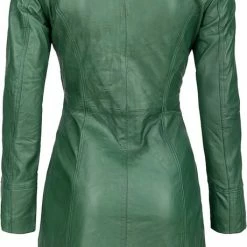 Urban 5884® – Janice – Dames – Lange Leren Jas – Lamsleer – Schuine Ritssluiting – Groen – Maat S