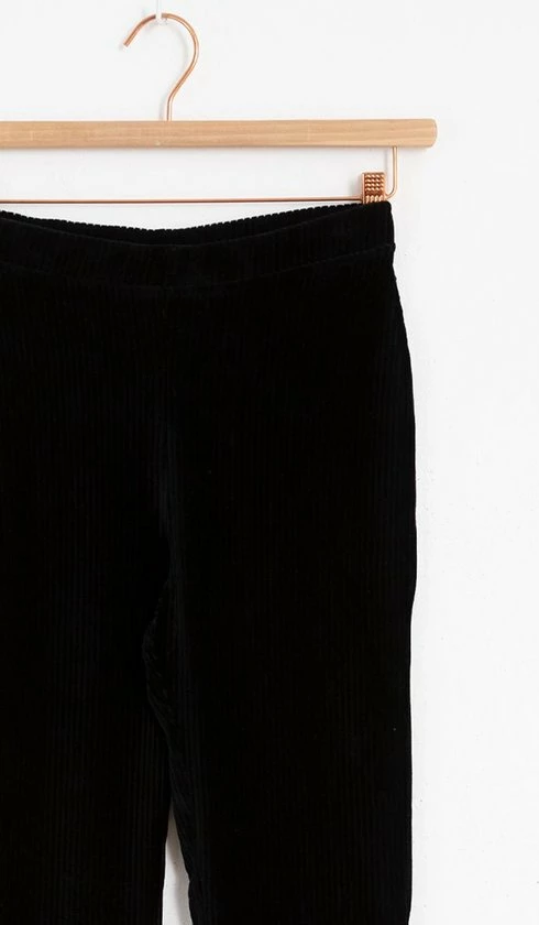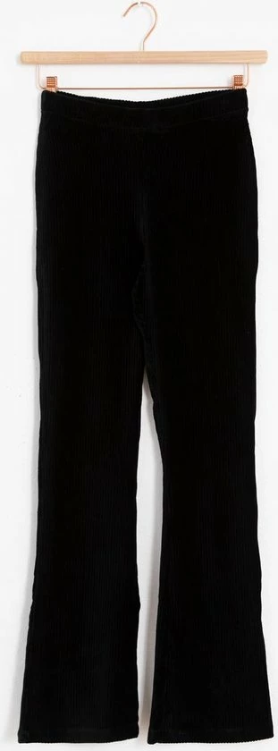 Klaar voor een dagje relaxen. Deze zwarte flared broek van Sissy-Boy heeft een velvet rib structuur. Superzacht en heerlijk comfortabel. Hij is gemaakt van 73% katoen, 25% polyester en 2% ea.
