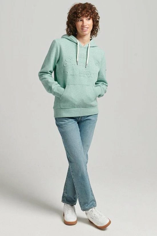 Geef je laagjesoutfit extra glans. Als het om draagcomfort gaat, is de klassieke hoodie een iconische keuze. Je trekt hem makkelijk aan en hij is perfect voor een middagje loungen. We gaven dit populaire model een sprankelende stijlboost door ons vintage logo met een glitterprint te bewerken. Wat dacht je van een vleugje bohemienglans voor je doordeweekse outfit? Casual pasvorm – de klassieke Superdry-pasvorm. Niet te nauwsluitend, niet te ruim, precies goed. Kies je gebruikelijke maat, Gevoerde capuchon met trekkoord, Lange mouwen, Geribde boorden, Buidelzak aan de voorkant, Superdry-reliëfopdruk, Geborstelde voering, Kenmerkend Superdry-label.
