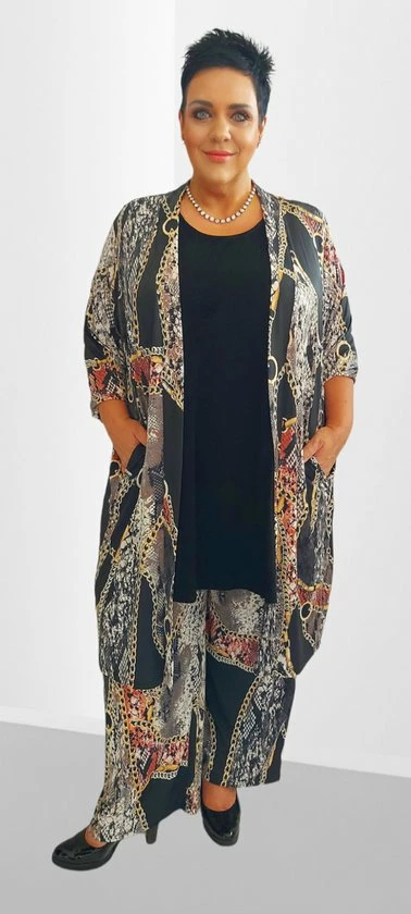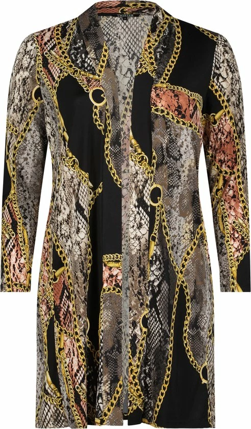 Twister Vest met steekzakken A-lijn Lange mouwen Lengte ca. 100 cm Zijdezachte jersey stof met allover print 94 % polyamide / 6 % elastaan.
