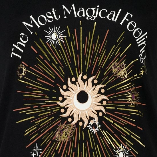 Zwart dames T-shirt uit de TwoDay collectie. Dit stoere zwarte shirt heeft een hoge, ronde hals en korte mouwen. Voorzien van een vrolijke opdruk op de voorzijde. Gemaakt van 100% katoen.