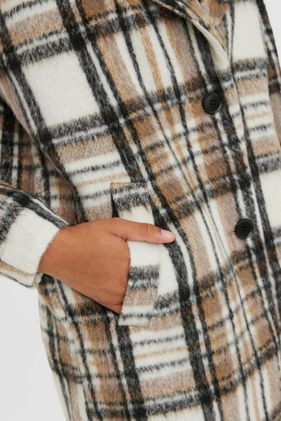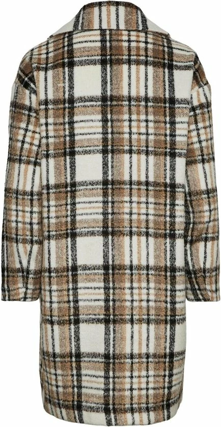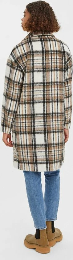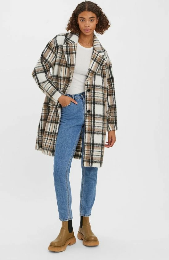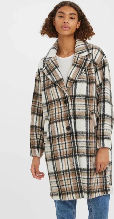 Halflange jas van Vero Moda met reverskraag en knoopsluiting. De jas is voorzien van een geruit patroon met twee schuine steekzakken aan de voorkant. Dit model heeft de uitstraling van een wollen jas maar is gemaakt van Polyester.