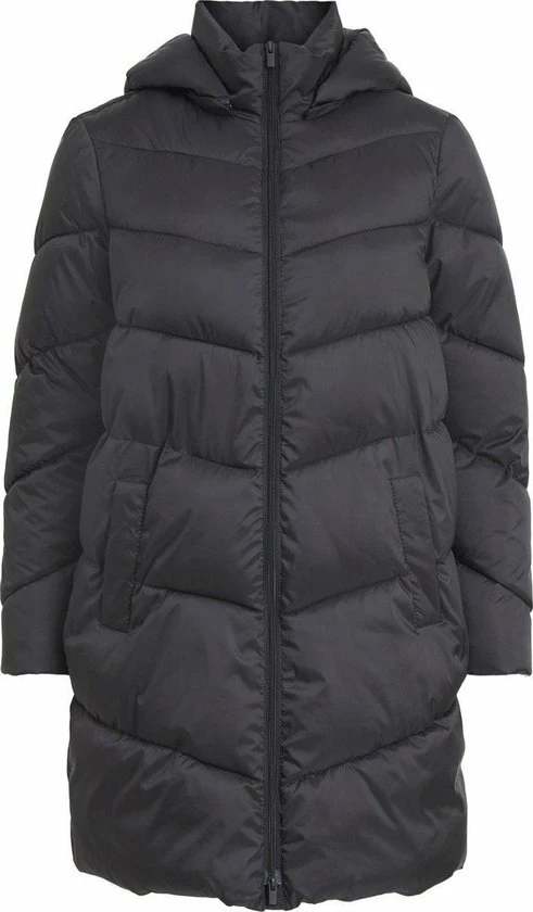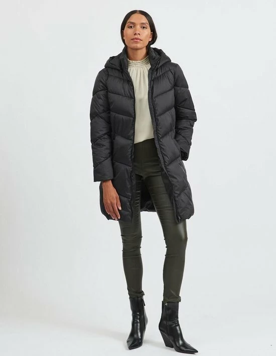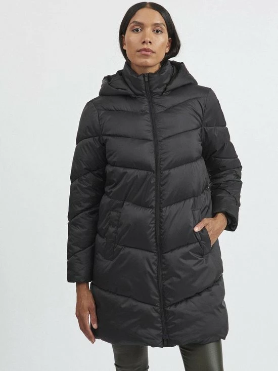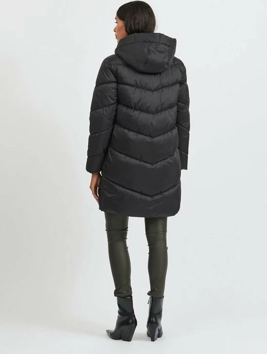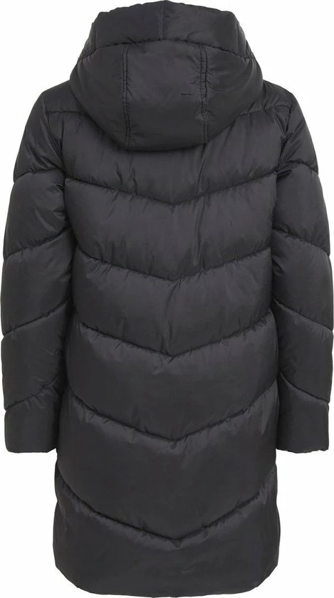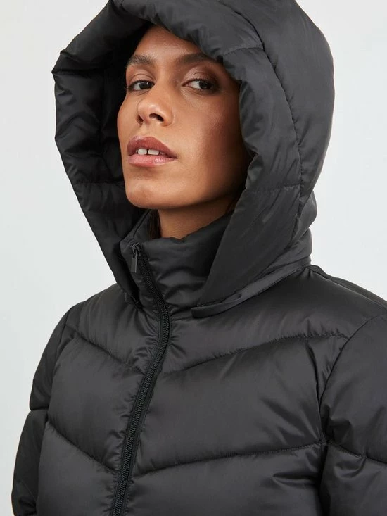 VILA duurzame donsjas gemaakt van 100% gerecycled polyester. Deze gewatteerde jas heeft een capuchon en valt tot boven de knie.