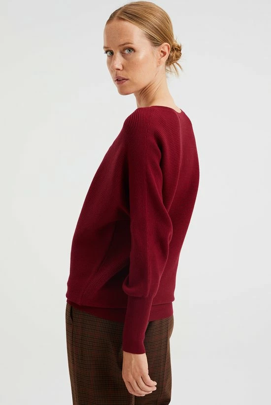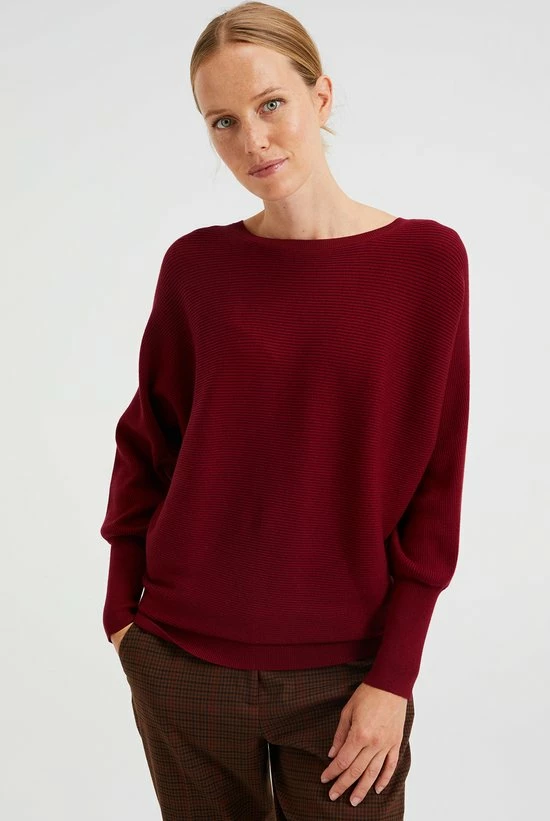Deze fijngebreide regular fit trui met ribstructuur is gemaakt van een viscosemix. De lange mouwen met verlaagde schoudernaden, boothals en onderkant zijn afgewerkt met een geribde boord.