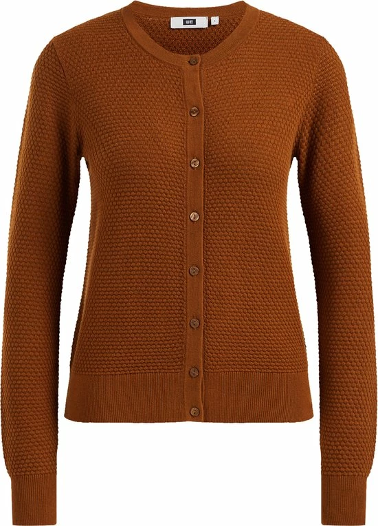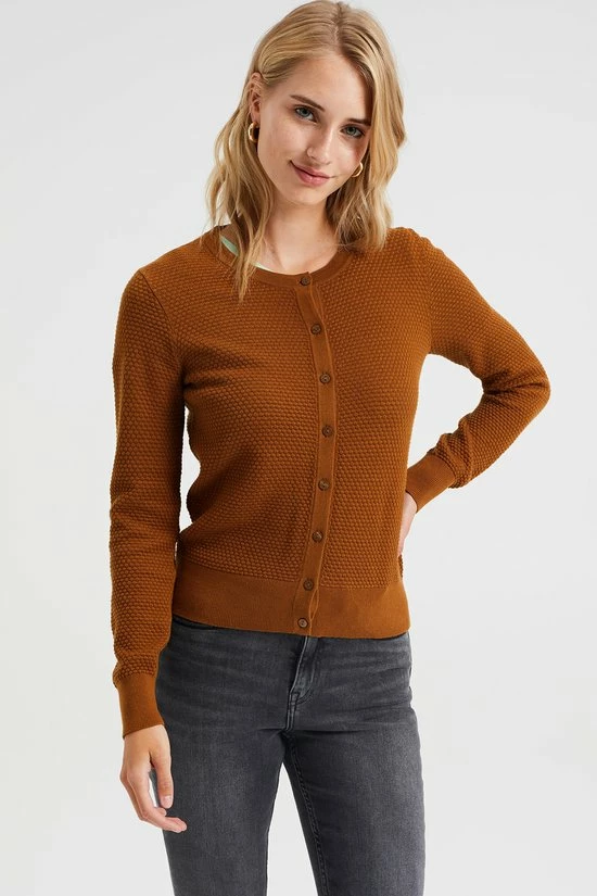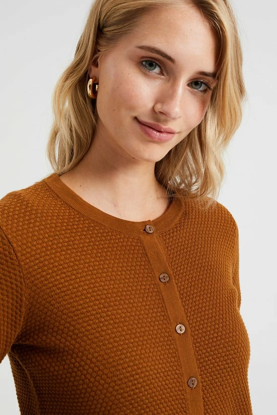 Een regular fit vest van katoen met een fijne structuur. Het model heeft een ronde hals, knoopsluiting en lange mouwen met geribde boorden.